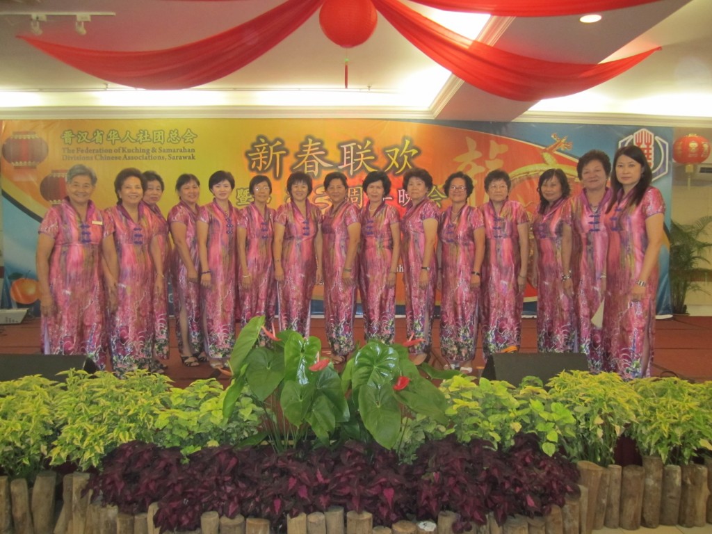 妇女团郭秋贤 (左五) 代表居士林参与华总于1.2.2012举办的2012年新春暨33周年晚宴并协助礼宾。
