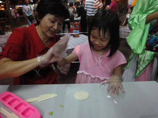 此项活动当中,妇女团特别安排了节目 “排制作月饼摊位”,现场提供示范制作月饼,让家长几幼儿们可以亲身体验制作月饼的过程。
